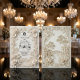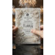 Set the tone for a timeless union with this sophisticated design, featuring an intricate faux-engraved aesthetic and romantic vintage silhouettes.