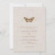 Cette élégante invitation de mariage présente une silhouette de papillon brun vintage sur un faux lin