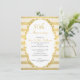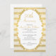 Cette invitation pour le 50e anniversaire de mariage présente une guirlande ovale en feuille d'or faux décorative et une bordure à motif rayé. La zone de texte est blanche et de forme ovale. Cette invitation convient pour une fête d'anniversaire de mariage semi-formelle ou formelle de 50 ans. Le design est élégant et simple. Cette invitation de 50e anniversaire de mariage en faux or est prête à être personnalisée.