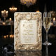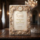 Définissez le ton de votre cérémonie printanière officielle avec ce design luxueux inspiré du baroque, avec des volutes élégantes et une crête florale romantique.