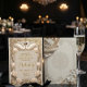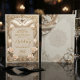 Définissez le ton de votre événement formel en noir-tie avec ce design sophistiqué, présentant des cygnes symétriques et une ornementation classique dans des tons neutres chauds.