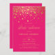 Invitez vos invités à votre événement avec cette invitation personnalisable pour baby shower. Elle présente des confettis en faux papier doré sur un fond rose magenta. Personnalisez-la en ajoutant vos détails. Cette invitation magenta est parfaite pour n'importe quel thème ou saison de shower. Veuillez noter qu'il n'y aura pas de véritable papier doré dans l'invitation.