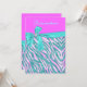 Elégant motif zèbre rose et bleu aqua avec FAKE PARTIES SCINTILLANT LOOK avec aqua satin bow et un diamant brillant. Stylisé, féminin, féminin ! L'invitation parfaite à toute fille chic ! Veuillez noter que ce produit est imprimé en photo. Il n'y a pas de diamant, d'arc en satin ou de parties scintillant. Il ne brillera ni ne brillera.