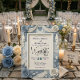 Élevez votre mariage de printemps romantique avec ce design floral en relief faux bleu poussiéreux, mettant en vedette de superbes illusions en papercraft et une typographie élégante.