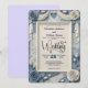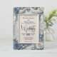 Invitation Faux relief 3D bleu poussiéreux floral mariage