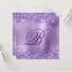 Une élégante invitation monogrammée à 50ème anniversaire pour elle. Faux parties scintillant violet avec étincelles contre un motif graphique en feuille de métal brossé faux. On peut customiser le chic monogramme de calligraphie royale violette au centre. Tous les éléments brillants et brillants de ce design girly moderne sont des graphismes numériques. Vous pouvez transférer le design de luxe monogrammé sur le devant à un petit ou moyen cadeau correspondant.