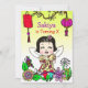 Jolie fantaisie style conte de fées noir cheveux asiatique féerie d'anniversaire invitations avec style d'art populaire fées esquissées à la main, fleurs et papillons. Violet, rose, rouge, vert citron et toutes sortes de couleurs assez vives.