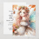 Invitation pour une fête d'anniversaire avec un fond à l'aquarelle représentant une fée d'automne, des feuilles et des fleurs d'automne dans des couleurs neutres.