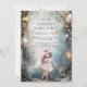 Une invitation magique à l'anniversaire d'une petite fille pour le 1er anniversaire, avec un cadre enchanté de forêt dans les bois avec des lumières suspendues, et une fée sur un chemin boisé. Disponible en version imprimée, en téléchargement numérique à envoyer sur votre téléphone, ou les deux.
