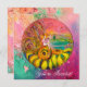Invitation FÉE DES TOURNESOLS jaune vert rose scintille
