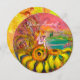 Une fée magique vibrante joue de la harpe sur les tournesols et une plante papillon colorée scintille d'or ...Peinture acrylique et aquarelle avec feuille d'or .