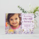 Célébrez votre petit enchanteur avec leur invitation à l'anniversaire "Fairy First" ! Ajoutez une photo de charme de votre enfant pour une touche spéciale. Décorée d'un paysage floral violet d'aquarelle enchanteur, cette invitation donne le ton d'une journée magique : fées en robes violettes éthérées et leurs amis papillons violets flottent et tourbillonnent parmi les fleurs et les champignons.