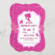 Carton d'invitation anniversaire poupée fancy pailletée rose