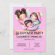 Une belle aquarelle graphique ai avec trois réalistes 3D qui ont l'air de petites filles fées dormant dans des sacs de couchage violets et bleus. Ils sont serrés dans leurs bras et les yeux fermés. Les filles sont mises contre un joli arrière - plan rose qui a édité des modèles de texte noir sur elle pour votre libellé personnalisé. Ils sont idéaux pour votre fille si elle a une soirée dortoir / sommeil pour des amis pour célébrer son anniversaire.