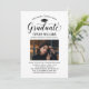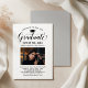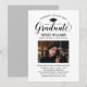 Elégante carte de faire-part de graduation et l'invitation de la fête de graduation félicite et annonce votre grade dans le style! Comprend un casquette noir, un "Graduate" en script, et un texte personnalisé moderne qui peut être personnalisé avec le nom du diplômé, l'école, et les détails de la fête. Ajoutez une photo préférée du grad. Notez que la couleur d'accent gris neutre au dos de la carte peut être changée en blanc ou en une autre couleur qui correspond aux couleurs de la photo ou de la fête.