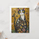 Cette image présente un magnifique chat rendu dans le style artistique qui rappelle Gustav Klimt. Le chat, avec ses yeux jaunes frappants, sa fourrure blanche et noire, et ses motifs tourbillonnants et complexes sur son corps, dégage une aura royale et mystérieuse. L'arrière - plan est richement décoré de teintes dorées, de formes organiques et de motifs floraux, se mélangeant harmonieusement à la silhouette du chat, ornée de motifs circulaires ornés et d'ornements délicats. L'ensemble est une fusion fascinante de beauté naturelle et de design luxueux et ornemental.