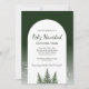 Invitation Feliz Navidad Fiesta, avec un arrière - plan blanc et vert et des arbres à feuillage persistant simples design. Avec des lettres personnalisables en vert, vous ajoutez vos propres informations. Une façon festive et unique de planifier votre événement de Noël de Fêtes.