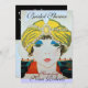 Illustration haute couture Art Déco française vibrante et élégante avec monogramme. Portrait d'une jeune femme élégante et belle portant un chapeau oriental jaune avec des plumes en noir, blanc, jaune, bleu, rouge. Invitation à une fête cool, moderne et artistique.
