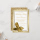 L'élégante invitation à la fête d'anniversaire blanche et or de la femme avec de belles chaussures talon or haute sur un élégant arrière - plan de parties scintillant diamant blanc et or. Ces élégantes invitations blanches et dorées à la fête d'anniversaire sont facilement customisées pour votre événement en ajoutant simplement vos détails dans le style de police et le libellé de votre choix.