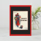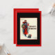 Femme en manteau rouge faisant du shopping avec un Terrier Écossais est une carte de vacances élégante qui rappelle le style déco des années 20 et 30. Ceci est une invitation à une maison ouverte ou à une fête.