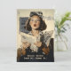 Illustration de style vintage d’une femme aux yeux larges en tenue à damiers, qui réagit de façon spectaculaire à quelque chose de choquant dans le journal qu’elle tient.
