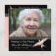 Élégante annonce funéraire et commémorative de colombe rose. Ce magnifique faire-part funéraire photo de colombe rose et noir est facilement customisé avec votre photo et les détails en ajoutant vos détails d'événement, photo, style de police, taille & couleur de police, et le libellé. Veuillez noter que tous les modèles de cartes et d'invitations que vous trouverez sur Zazzle sont des graphiques imprimés sans bijoux, arcs, surélevés, gaufrés, ou des pièces ou pièces ajoutées.