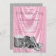 Invitation de fête d'anniversaire aux femmes rose et argent avec de jolies chaussures à talon haute en argent, bouteille de parfum et cadeaux sur un bel arrière - plan satin rose. Cette invitation de fête d'anniversaire rose est facilement customisée pour votre événement en ajoutant simplement les détails de votre événement.
