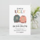 Une invitation mignonne à votre vilaine fête de pull avec des couleurs muettes et un design moderne. Le texte intelligent "C'est sur le point d'être UGLY" apparaît en haut et est accentué d'un graphique dessiné à la main de pulls de vacances kitsch.