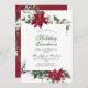 Festive Red Poinsettia Noël Holiday Luncheon Invitation.