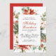 Festive Red Poinsettia Noël Holiday Luncheon Invitation.