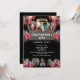 Une scène nocturne éclatante, frappante et éblouissante d'une trapéziste sur le point de commencer sa routine ; un fou avec tatouages et roses sur la tête et un maître de sonnerie portant un chapeau supérieur et une veste de dashing se reposant le long du bord supérieur d'une incrustation rectangulaire sur le noir. Des feux d'artifice éclatants et colorés apparaissent autour d'eux et une rangée de gens enfilent leurs tenues festives de carnaval le long du bord inférieur de l'invitation. Il y a des modèles de texte blanc modifiables au-dessus d'eux pour votre libellé personnalisé. Ce design d'aquarelle luxueux, élégant et haut de gamme est idéal pour un festival, un carnaval ou une fête de cirque, qu'il s'agisse d'une retraite, d'un anniversaire, d'un halloween ou d'un dîner assis. Il conviendra aux ados comme aux adultes