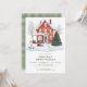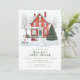 Festive Country Home Holiday Open House Invitation - Invitations amis et la famille à célébrer la saison avec ce design de vacances charmant, avec une confortable aquarelle maison de campagne magnifiquement décoré pour Noël. Un grand pin scintille à côté de la maison, tandis qu'une couverture de neige fraîchement tombée complète la scène hivernale enchanteresse. Parfait pour vos réunions de vacances ! Tous les textes et les couleurs sont entièrement modifiables selon votre style personnel.