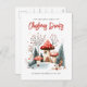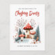 Carte d'invitation festive de Noël pour un monde hivernal merveilleux. Pour le couple ou la famille qui organise une soirée de boissons de Noël. Le design présente une scène hivernale en bois adorable à l'aquarelle. Facilement personnalisable sur le recto et le verso avec le texte de votre choix.