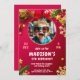 Un design de vacances gai avec des couleurs vives, des décorations dorées, des flocons de neige et des vibes joyeuses. Parfait pour célébrer l’anniversaire d’un enfant avec plaisir, rire et joie festive.
