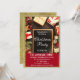 Fête de Noël festive invitation avec une parties scintillant dorée scintillante frise la frontière et des cadeaux rouges avec des arcs entourant un tableau noir sur bois brun rustique. Les détails de la fête sont écrits en blanc avec un arrière - plan rouge vif. C'est une invitation parfaite pour les vacances / Noël / hiver !