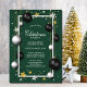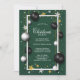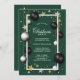 Invitation tes amis et ta famille à ta fête de Noël cette année avec cette invitation moderne qui présente une bordure blanche ornée de billes de sapin noir et blanc devant un arrière - plan vert.