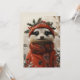 Illustration charmante et fantaisiste d'un meerkat habillé pour la saison d'hiver. Le meerkat porte un manteau rouge vif, un foulard tricoté et un casquette douillet orné de saints et de baies, entouré de branches enneigées. Les couleurs chaudes et festives et les douces chutes de neige créent une atmosphère de vacances chaleureuse, parfaite pour la saison.