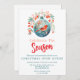 Festive Blue Bauble Mistletoe Christmas Open House Invitation - An elegant and festive Open House Christmas Party invitation with watercolor winter greenery surrounding a Christmas ornament ball with a painted red bird in a Scandinavian inspired art with classic red and green holiday colors, as well as trendy teal, light blue and coral. All text is editable. Available as an instant digital download perfect for last minute party planning.