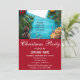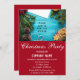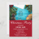 Festive annuel de la société fêtes de Noël invitation avec branches d'arbres de Noël, cônes de pin et biscuits de Noël sur bois bleu clair. Les détails de la fête sont écrits en blanc avec un arrière - plan marron rouge vif. Cette invitation est parfaite pour des fêtes de vacances, de Noël ou d'hiver !