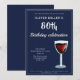 Invitation Fête 80 ans vin rouge bleu marine