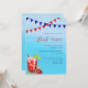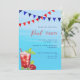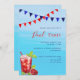 Eau bleue en arrière-plan, une boisson rouge et des drapeaux rouges et bleus en décoration. Modèles pour les détails de votre fête, informations.