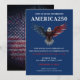 Célébrez un événement unique avec cette invitation pour la fête America250, créée pour honorer le 250e anniversaire des États-Unis le 4 juillet 2026. Parfaite pour les fêtes patriotiques, les rassemblements communautaires, les célébrations de quartier et les événements commémoratifs historiques, cette invitation donne le ton pour une fête d'Indépendance significative et festive. Conçue pour marquer le Semiquincentenaire de l'Amérique, elle met en avant la fierté nationale, la tradition et la convivialité tout en invitant les convives à profiter d'une soirée mémorable qui pourra inclure une bonne nourriture, une compagnie animée et des feux d'artifice. Facile à personnaliser, il suffit d'ajouter les détails de votre événement pour créer une invitation professionnelle et accrocheuse disponible en formats imprimé et numérique. Idéal pour les hôtes qui prévoient une célébration patriotique du