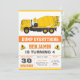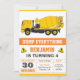 Éblouissez vos invités avec cet invitation de fête d'anniversaire cool à thème de construction avec un mixeur en béton jaune avec typographie moderne contre un arrière - plan blanc. Ajoutez simplement les détails de votre événement sur ce modèle facile à utiliser pour en faire une invitation unique. Retournez la carte pour révéler un motif rayé jaune et noir au dos de la carte.