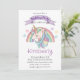 Invitation Fête Arc-en-Ciel Pastel Mignonne et Licorne Paille