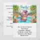 Invitez vos invités dans un style tropical avec cette adorable carte postale d'invitation à une fête au bord de la piscine sur le thème tropical Hippo Bikini ! Avec un hippopotame glamour en bikini coloré, entouré de palmiers, de bouées et de nombreuses boissons fruitées estivales, ce design aquarelle lumineux apporte une ambiance insulaire amusante à n'importe quelle célébration. Le verso comprend un message d'invitation plus long—
