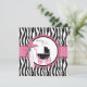 Poussette bébé et carte de style de boutique avec des accents rose chaud et une impression zèbre et pois.