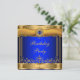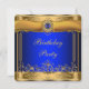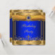 Belle invitation de fête d'anniversaire bleu royal et or avec des tourbillons dorés. Cette invitation de fête d'anniversaire bleu royal et or élégante est facilement personnalisable pour votre événement en ajoutant simplement vos détails d'événement, style de police, taille de police et couleur, et texte. Veuillez noter que tous les autocollants, cartes et modèles d'invitation que vous trouverez sur Zazzle sont des graphiques imprimés sans véritables bijoux, rubans, reliefs, gaufrures ou pièces ajoutées.