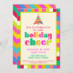 Installez un ton festif et lumineux pour votre réunion de vacances avec cette invitation de Holiday Cheer avec un arc-en-ciel de rayures colorées maximalistes vives et typographie distinctive. Traversé par un arbre géométrique rayé unique avec des bandes arc-en-ciel multicolores sur la bordure et l'envers. Customisez avec votre invitation et tous les détails essentiels des fêtes de fin d'année.