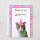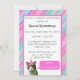 L'invitation de fête animalière amusante comprend une photo d'un chat chaton à la poitrine blanche et tigre rayé visage et dos. Le chat rayé de tigre a un casquette de fête sur la tête avec des rayures roses. Le chat animal de fête est sur un arrière - plan blanc avec garniture rose. L'arrière - plan du design est en général rayé rose, violet et bleu diagonale. Il y a du texte personnalisable dans une police noire amusante qui dit "Fête comme un animal!" L'envers de l'invitation a le même arrière - plan rayé rose, violet et bleu diagonale et une zone blanche solide avec garniture rose. Dans la zone blanche est du texte personnalisable en police noire où vous pouvez ajouter tous les détails de votre fête d'anniversaire. Dans le coin inférieur gauche se trouve une autre photo du chaton avec le casquette de la fête mais dans une version plus petite. À droite du chat se trouve une bulle de discours d'appel rose avec du texte personnalisable qui dit "Chut... c'est une surprise !" mais vous pouvez ajouter votre propre message ici. Une invitation à fêter un anniversaire et une invitation à fêtes d'anniversaire pour le propriétaire du chat et les amoureux de félins !