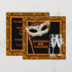 Invitation modèle de fête Costumée Halloween avec costumes orange et noir et cocktails. Cette invitation de bal masqué orange pour Halloween est facilement personnalisable pour votre événement. Ajoutez vos propres mots dans le style de texte, la taille et la couleur de votre choix !